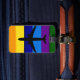 avec une conception colorée et lumineuse de motif de rayure d'arc-en-ciel. Couleurs intenses de bleus, pourpres, marine, orange, jaune qui se tiennent de la foule. Motif de rayure verticale semblable aux rayures de la peinture avec l'icône de l'avion. Perfectionnez pour le voyage et capable être customisé sur le dos avec vous pour posséder le nom et adresse.
