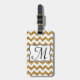 Étiquette moderne de bagage d'initiale de monogramme de motif d'impression de tissu de rayure de zigzag de Chevron de parties scintillantes d'or