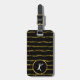 Dispose d'un motif de ligne de parties scintillant en or ondulé sur un arrière - plan noir. Personnalisez avec une initiale à l'avant, sur un cercle bordé de feuille, et un nom et une adresse à l'arrière.