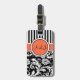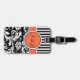 Étiquette À Bagage Étiquette noire, blanche, orange rayée Damas