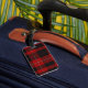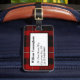 Étiquette élégante de bagage faite dans le motif noir et rouge traditionnel de plaid de tartan de Cunningham. Un secteur blanc des textes, sur l'avant, a le texte noir prêt à personnaliser avec votre information. La manière parfaite de repérer votre bagage, et fait une grande idée de cadeau.