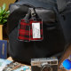 Étiquette À Bagage Étiquette noire et rouge de bagage de plaid de