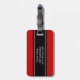 Style élégant personnalisé de l'étiquette | de bagage de voyage de rouge de cerise. Conception noire et rouge classique de rayure avec les lettres intitial nommées décorées d'un monogramme blanches. Idée élégante de cadeau pour les hommes et des femmes