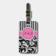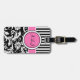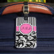 Étiquette À Bagage Étiquette rayée noire, blanche, rose de bagage de