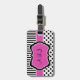 Étiquette À Bagage Étiquette rayée rose, noire, blanche de bagage de