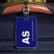 Étiquette À Bagage Étiquette unique en bleu blanc Script Monogramme