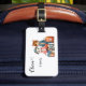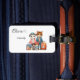 Marque à bagages illustrant l'illustration colorée d'une famille de chats embarquant dans une aventure de voyage. Une étiquette de bagage amusante pour un enfant qui aime les chats.
