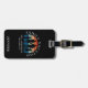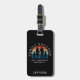 Retro soleil famille étiquette de bagages de vacances avec la famille main main. Personnalisez-le avec les détails de votre événement.