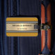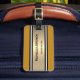 A fashionable luggage tag designed in bold mustard yellow with a metallic gold central stripe and sleek black and white side accents. The glamorous gold band is perfect for custom text, name or contact detail—ensuring visibility and signature style. This combination of vibrant color with luxurious and modern stripes adds sophistication to any bag, suitcase or backpack. Durable, easy to spot, and tailored for organized, trend-conscious travelers. The optimal accessory for gifts, professionals, families or anyone seeking standout flair and practical clarity.