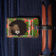 Ce design présente la citation "Hello Summer", feuilles de monstères tropicales, et une beauté naturelle avec un poil bouclé noir, sur un arrière - plan rouge des deux côtés. Vous pouvez y customiser en changeant "Bonjour été" en votre nom ou phrase... amusez-vous !
