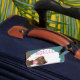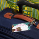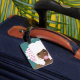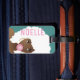 Ce design est composé d'une peau brune, d'une beauté naturelle des cheveux avec une afro blanche, d'une gomme à bulle rose éclatante sur un arrière - plan turquoise. Déposez-vous à la consigne à bagages avec cette étiquette à bagages.
