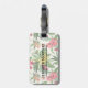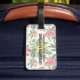Étiquette À Bagage Feuilles Vertes Et Fleurs Roses Et Jaunes