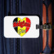 Joli aimant avec un coeur représenté avec le drapeau belge. Sur le texte se trouve : Petite fille belge le contexte est dans la couleur vide. Plutôt à si donner comme cadeau pour vous-même à ce spectacle vous fierté est pour un belge. à la couleur : rouge, jaune et noir.