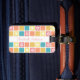 Un bagage motif carré à la ceinture avec des angles arrondis de style moderne dans de jolies couleurs printanières, décoré de coeurs mignons et de fleurs marguerites rétro. Personnalisez en ajoutant le nom de n'importe quelle fille girlie à ce design rétro mod dans les tons de corail rose or verge jaune, et bleu turquoise. Copyright artistique original de ©OhSoGirly