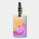 Fille, dessin animé, adorable petite sirène avec queue violette rose en combinaison avec les vagues océaniques roses jaunes et d'adorables plages colorées. Joli, unique, porte - clé fantaisiste pour fille, avec initial personnalisé au côté avant et adresse personnalisée au côté arrière.