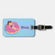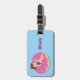 Un bagage tag parfait pour ceux qui partent en vacances à la plage ou à la piscine ! Il a une illustration d'une fille en maillot de bain violet qui s'allonge sur un beignet rose avec un arc-en-ciel saupoudrant flottant de piscine. Elle a une boisson glacée cool dans la main. Personnalisez avec le nom.
