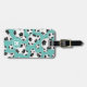 Cette étiquette à bagages sur le thème du soccer comporte un motif aléatoire de balles de football de tailles différentes surplombant un arrière - plan turquoise personnalisable - personnalisez avec un monogramme sur le devant, l'adresse à l'arrière - par katz_d_zynes