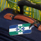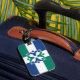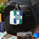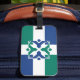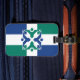 Luggage Tag with a design with the flag of Columbia, Missouri. A blue and green flag with a white cross