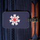 Luggage Tag with a design with the flag of Hokkaido Prefecture in Japan (北海道 , Hokkaidō), a blue flag with a white and red symbol