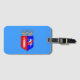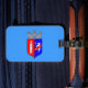 Luggage Tag with design with flag of Tirana, capital city of Albania, blue flag with coat of arms