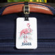 Élévéz votre expérience de voyage avec une superbe illustration aquarelle de flamant rose et de feuilles tropicales sur une étiquette de bagage blanche élégante. Personnalisez-la avec un texte personnalisable pour la rendre unique. Apportez une touche de vibes tropicales à votre destination exotique avec cet accessoire accrocheur.
