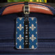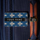 Étiquette À Bagage Fleur de Lis, Beige on Navy Blue, Royal, Your Name