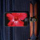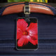 Étiquette À Bagage Fleur d'Hibiscus rouge rose chaud sur noir