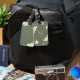 Marque à bagages élégante et féminine avec fleurs d'aquarelle avec faux papier d'or et faux accent parties scintillant d'or avec une couleur arrière - plan vert taupe.