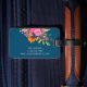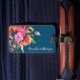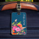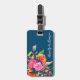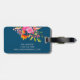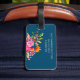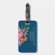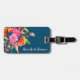 Marque à bagages florale brillante avec nom en écriture sur marine - accessoire de voyage personnalisé parfait pour une valise ou un sac à dos élégant ID.