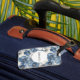 Étiquette À Bagage Fleurs de Denim Bleu Blanc