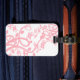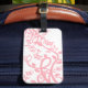 Une fibre rose douce et un design floral sur un arrière - plan blanc remplit l'avant et un arrière - plan fractal rose et pêche abstrait orne l'arrière de cette étiquette de valise modèle avec vos informations personnelles. Remplissez les champs du modèle avec vos informations et/ou cliquez sur personnaliser pour sélectionner le style, la taille et la couleur de police que vous souhaitez.