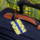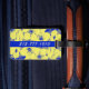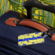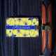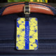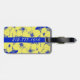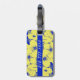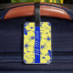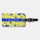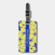 Un joli bagage d'une sorte de bagage tag de fleurs jaunes tropicales contre un arrière - plan bleu cobalt. Prêt à être customisé avec votre nom sur le devant et le numéro de téléphone sur le dos.