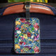 Étiquette À Bagage Fleurs mignonnes feuille bleu monogramme motif