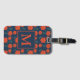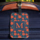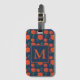 Étiquette À Bagage Fleurs rouges Motif Monogramme bleu foncé