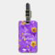 Jolie étiquette à bagages fleuris avec votre nom. Facile à customiser. Fantastique motif de fleurs violettes.