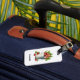 Une étiquette de bagage avec une image estivale d'une bande de fraises débordant dans un seau.