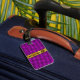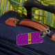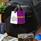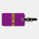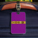 Caractéristiques de conception ce de bagage d'étiquette un motif simple des lignes/des rayures noires et fuchsia alternatives. Il comporte également un nom personnalisé sur l'avant dans un secteur coloré par or de faux, et a personnalisé l'information de contact sur le dos.