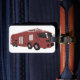 Spot your bags instantly with these high-tech luggage tags featuring a heavy expedition truck design. The bold futuristic red transport graphic ensures your suitcase stands out on the carousel, while the industrial concept art style appeals to frequent travelers and sci-fi fans. Made for durability, these tags feature a sleek cyberpunk machine illustration that reflects a passion for modern automotive design and adventure rigs. Protect your gear and travel in style with this unique galactic rover themed travel accessory.