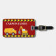 Marque de bagage de véhicule de construction cool personnalisée pour un enfant qui aime les véhicules de construction jaunes en jaune et rouge. Un cadeau amusant pour un petit garçon qui aime les voitures et les camions. Customisez avec le nom de votre enfant sous le ruban d'avertissement. Comprend un camion mélangeur de ciment en béton et une crevette avec un backhoe.
