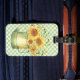 Pretty country / farmhouse design fea watercolor illustration of a garden watering can filled with a bouof sunflowers on mint green and white checkerboard background