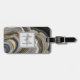 Une étiquette de bagage avec un design abstrait avec un motif minéral de géode agate. L'or, le gris, le blanc et le noir tourbillonnent ensemble formant d'élégantes vagues de couleur. Un carré gris clair avec une fine bordure noire superposée avec votre texte à l'intérieur. Parfait pour transmettre un air de classe et d'élégance.