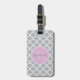 Une étiquette de bagage à motif quadrilatère grise et ceinturée avec un badge à pétoncles dans une lavande rose que vous pouvez personnaliser en ajoutant votre nom et une initiale monogrammée à. Il fait partie de Harbour Mist Grey and Lavender Pink Spring Collection.