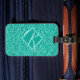 Améliorez vos bagages de voyage avec une étiquette élégante faite sur mesure. Balise de bagage en valise monogramme Parties scintillant bleu turquoise brillant étincelante. Monogramme avec votre propre initiale. Super idée cadeau pour le voyageur.