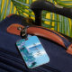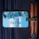 Conception moderne de tag de bagage personnalisé avec des coups de pinceau scintillants en vert, bleu et violet et des étincelles sur un fond métallisé bleu clair. Le texte est entièrement personnalisable. Pour le modifier, utilisez l'option Personnaliser. Pour plus de modifications, telles que des modifications de la police, de la couleur du texte ou de la mise en page, utilisez l'option Outil de conception d'édition.