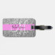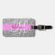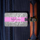 Glam et girly rose et gris / argent parties scintillant scintille le nom de monogramme blanc et étiquette de bagages initiale. Votre nom personnalisé et votre monogramme sont écrits dans un élégant script écrit à la main avec un arrière - plan rose. Vous pouvez modifier la couleur du texte, le style et la taille de police à l'aide de l'option personnaliser. Un cadeau d'anniversaire ou de Noël parfait !