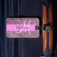 La parties scintillant violet de verre brille le nom blanc monogramme et la marque de bagages initiale. Votre nom personnalisé et votre monogramme sont écrits dans un élégant script écrit à la main avec un arrière - plan rose. Vous pouvez modifier la couleur du texte, le style et la taille de police à l'aide de l'option personnaliser. Un cadeau d'anniversaire ou de Noël parfait !