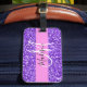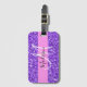 La parties scintillant violette et rose glam scintille le nom de monogramme blanc et l'étiquette de bagage initiale. Votre nom personnalisé et votre monogramme sont écrits dans un élégant script écrit à la main avec un arrière - plan rose. Vous pouvez modifier la couleur du texte, le style et la taille de police à l'aide de l'option personnaliser. Un cadeau d'anniversaire ou de Noël parfait !