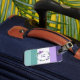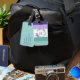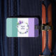 Marque de valise colorée faite en gras bloc de couleur motif de violets et d'aquas, avec une jolie couronne au milieu avec une seule lettre violet monogramme. Personnalisez le monogramme d'une lettre et l'information, sur le dos, pour vous-même ou comme une excellente idée cadeau.