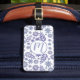 Des fleurs et des feuilles illustrés sont disposés en motif à imprimés floraux. Numériquement à main mélangée à des textures d'aquarelle peintes en lavande douce, gris clair et bleu clair. Simple, doux et joli ! Ajoutez votre propre initiale ou initiale de quelqu'un d'autre pour customiser cette conception plus loin. Tu ne perdras plus jamais tes bagages.