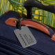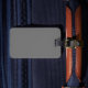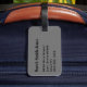 Balise de bagage avec nom et adresse sur une couleur arrière - plan gris (gris). Personnalisez avec votre nom et vos informations d'adresse en utilisant les modèles faciles. La couleur de police, le style de police et la taille de police sont personnalisables.